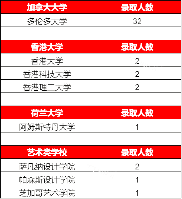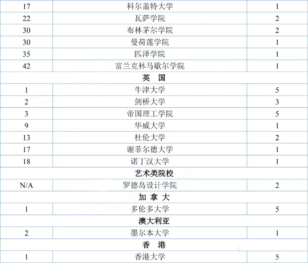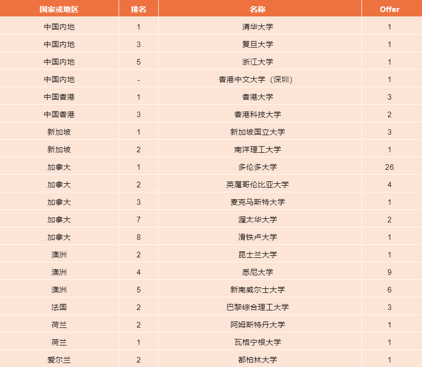 其他国家/地区大学录取结果(部分)