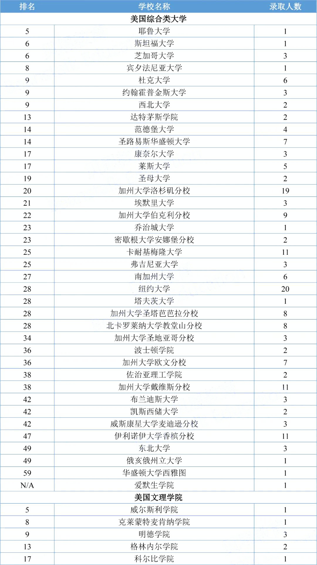 美国综合性大学录取结果(部分)
