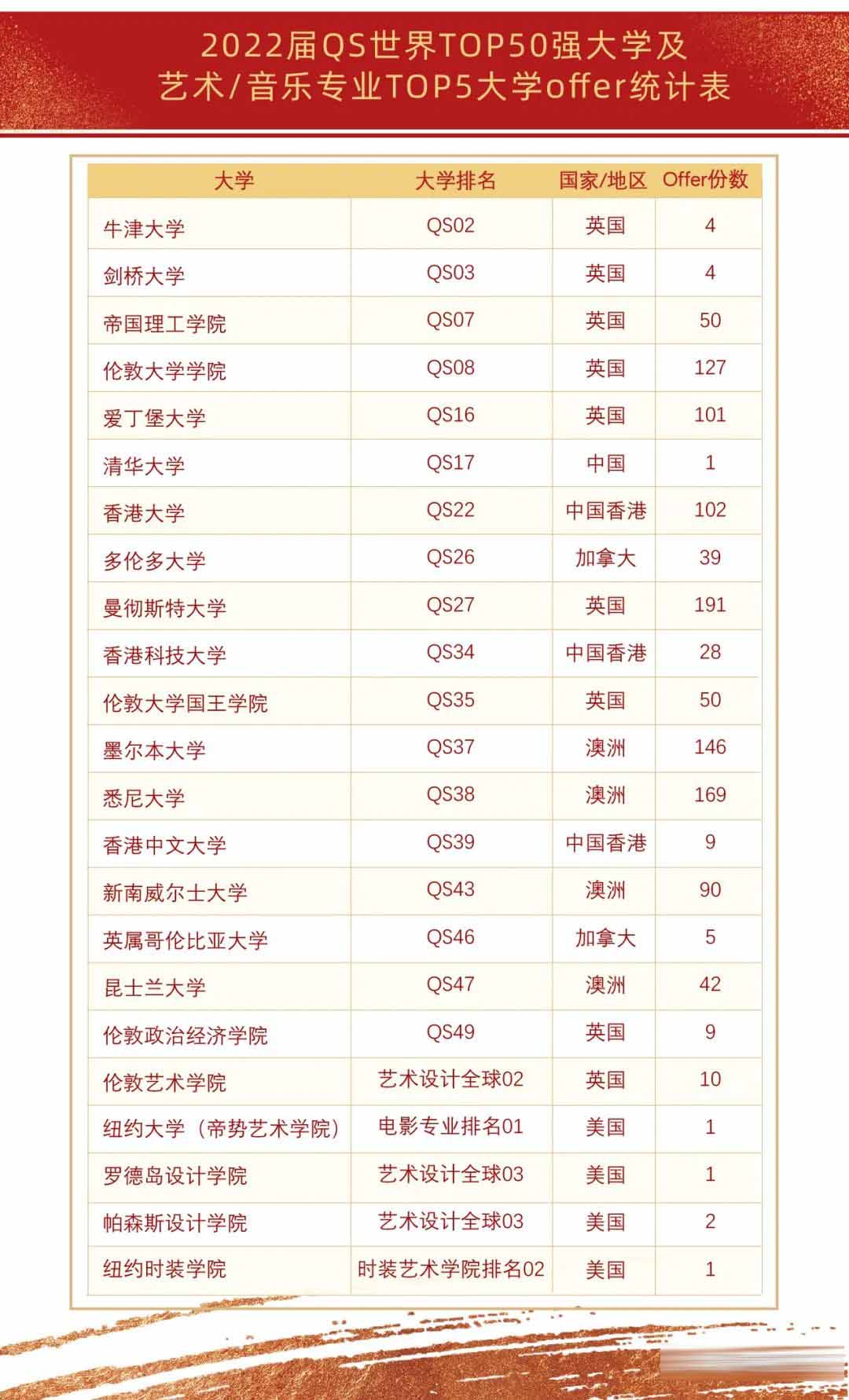 *排名参考2022 QS世界大学排名,以上排名顺序以地区划分
