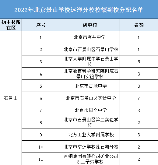 2022北京景山学校远洋分校校额到校名额都分配给了哪些初中校? 北京admw360教研组整理分享相关信息,供大家参考。