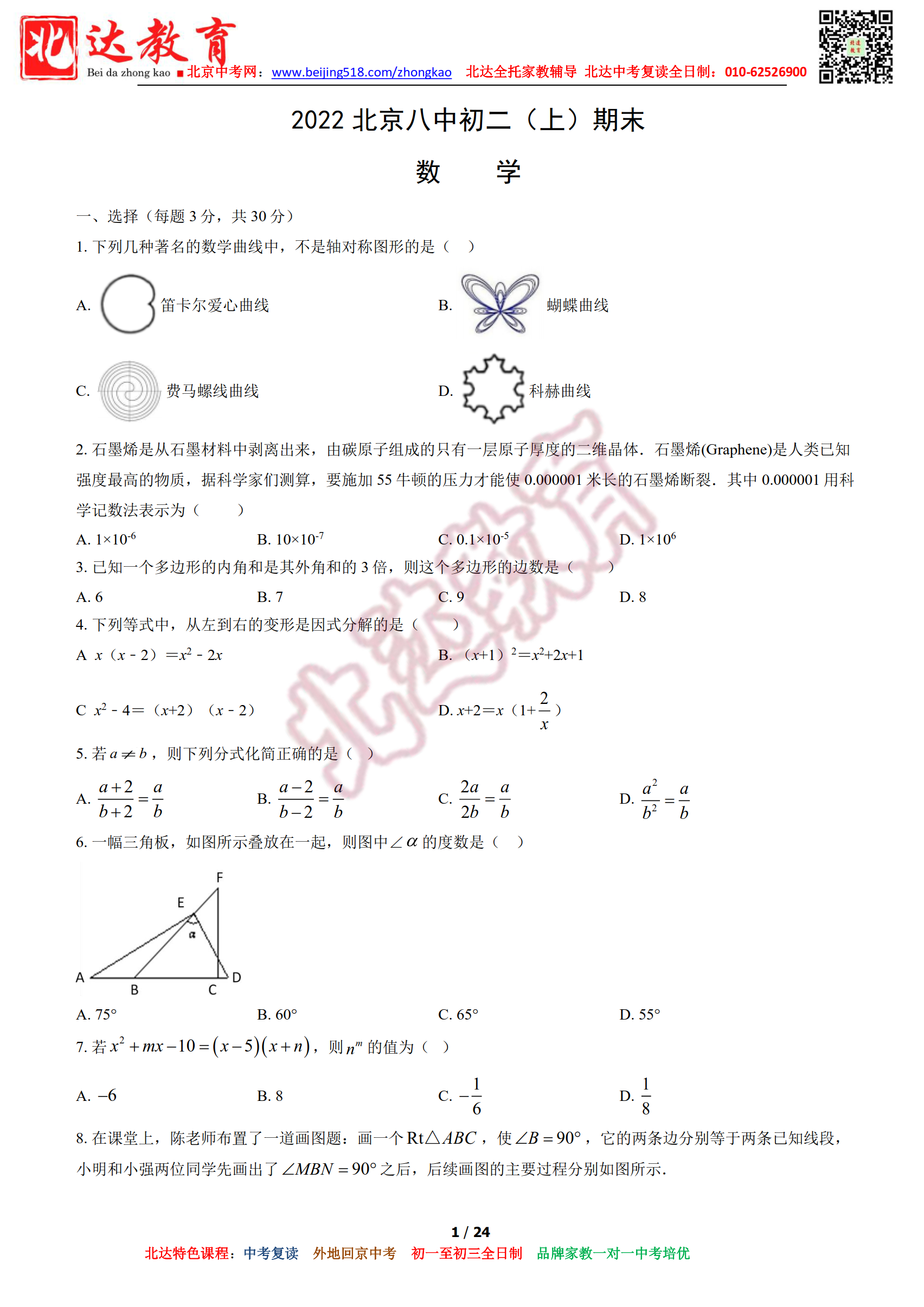 2022北京市八中初二(上)期末数学试卷及答案!北京admw360教研组整理分享相关信息,供大家参考。