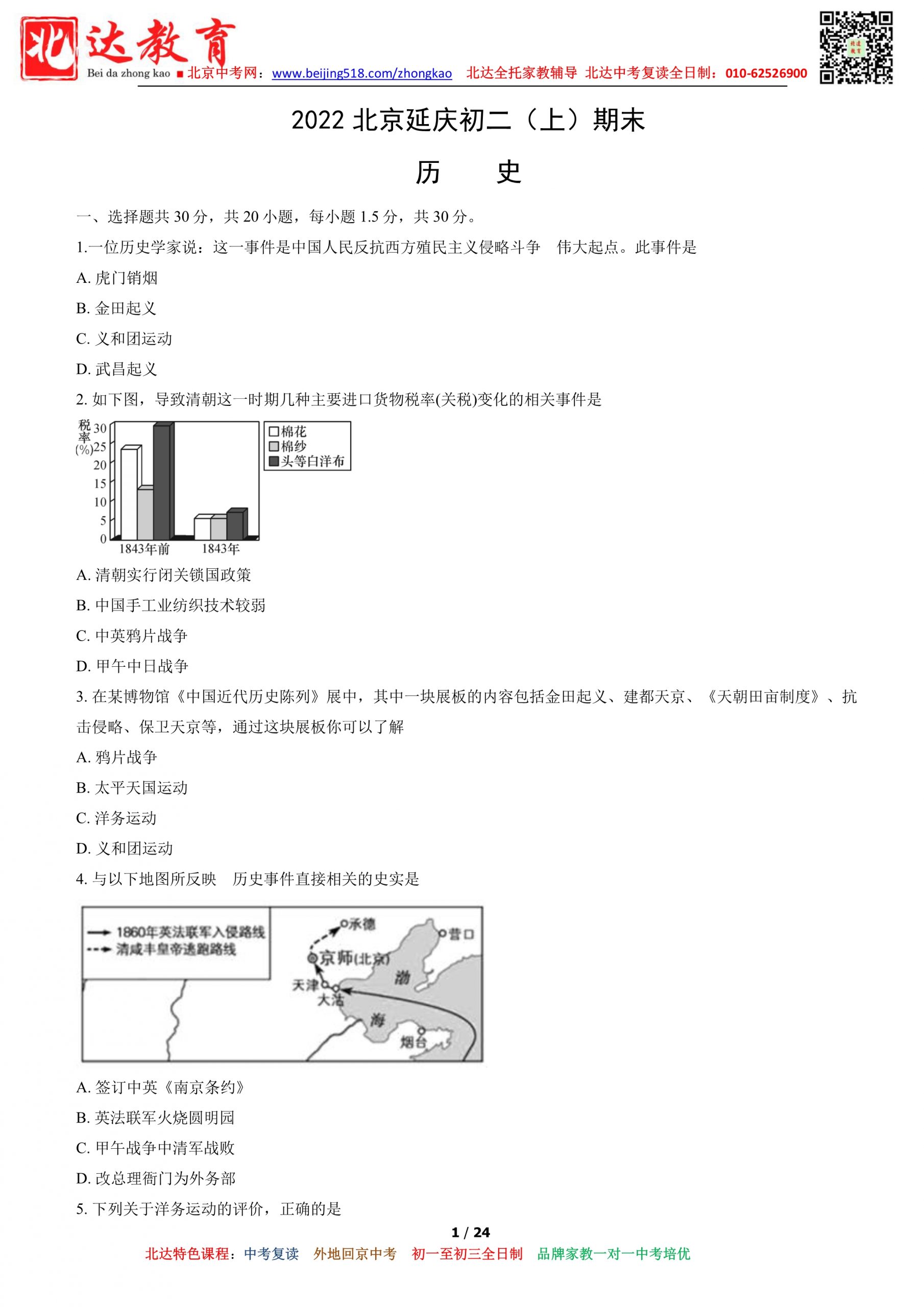 2022北京市延庆区初二(上)期末历史试卷及答案.pdf