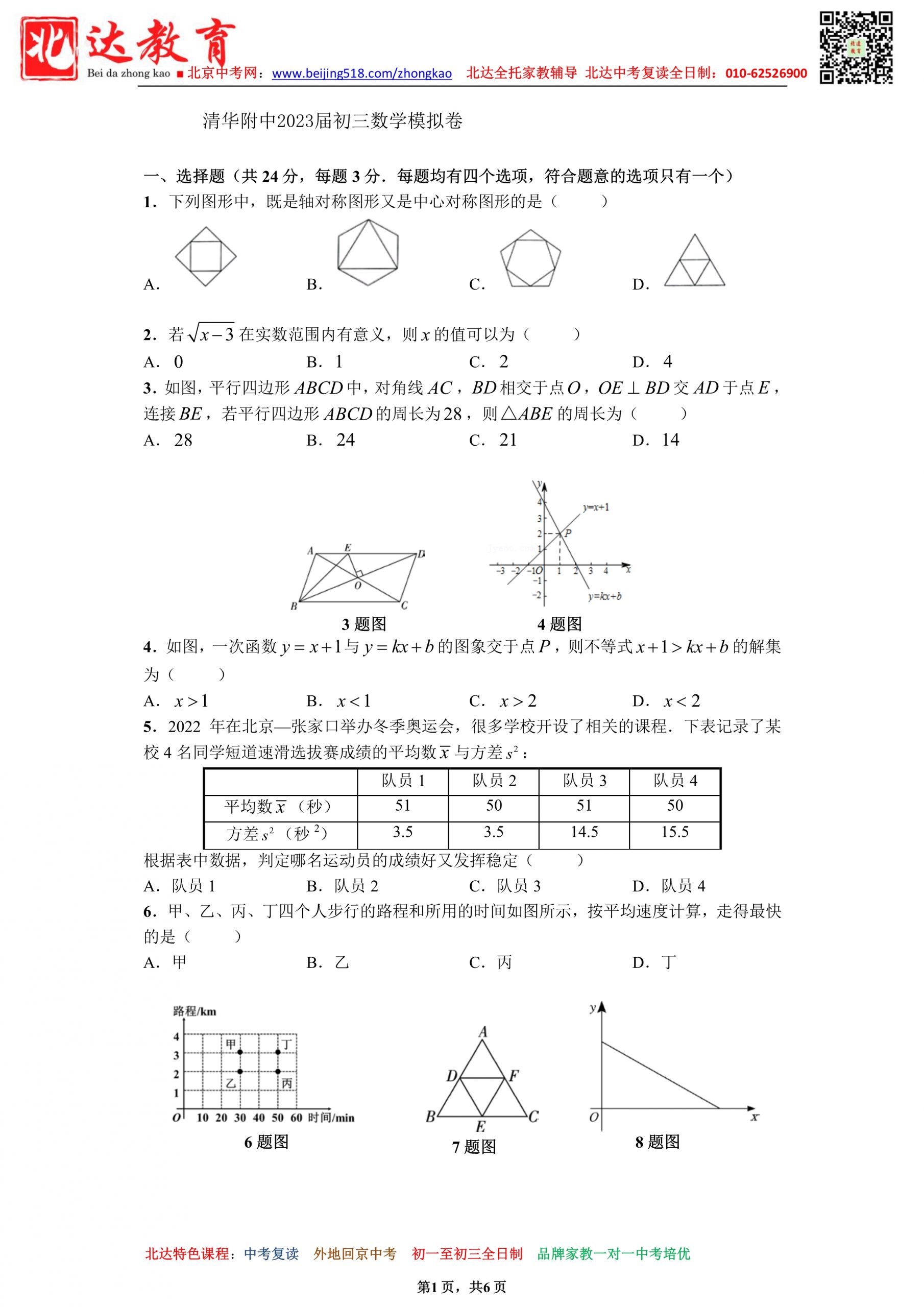 2022-2023学年北京市清华大学附属中学九年级(上)开学模拟数学试题!北京admw360教研组整理分享相关信息,供大家参考。