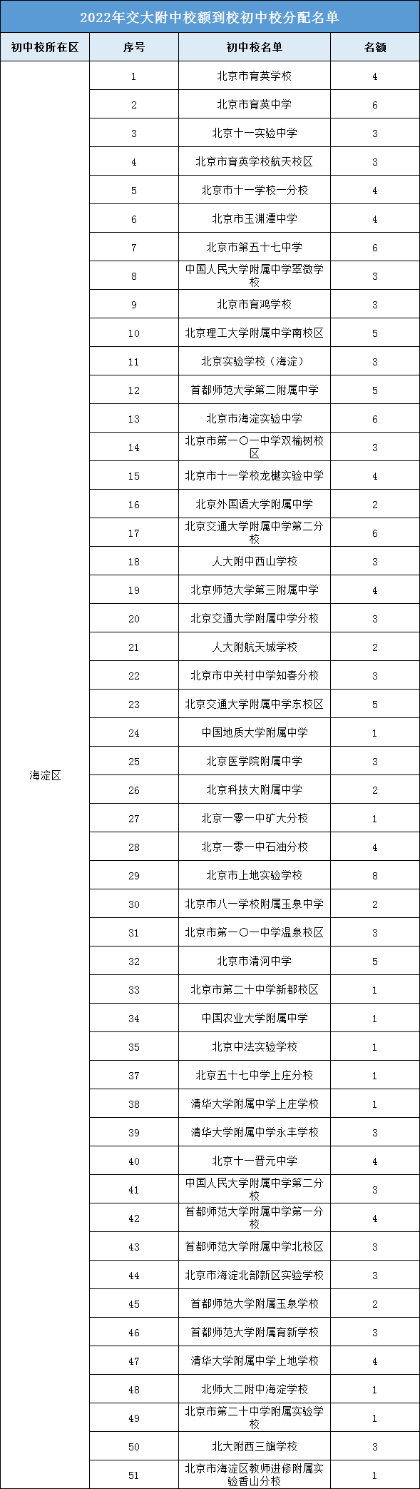 2022年交大附校额到校名额都分配给了哪些初中校?北京admw360教研组整理分享相关信息,供大家参考。