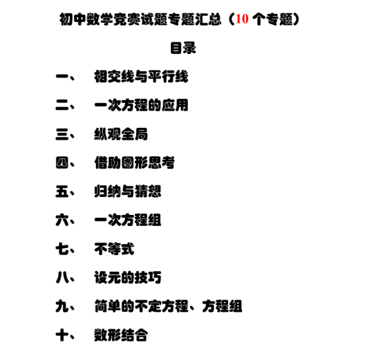 初中数学竞赛试题专题汇总(10个专题)!北京admw360教研组整理分享相关信息,供大家参考。
