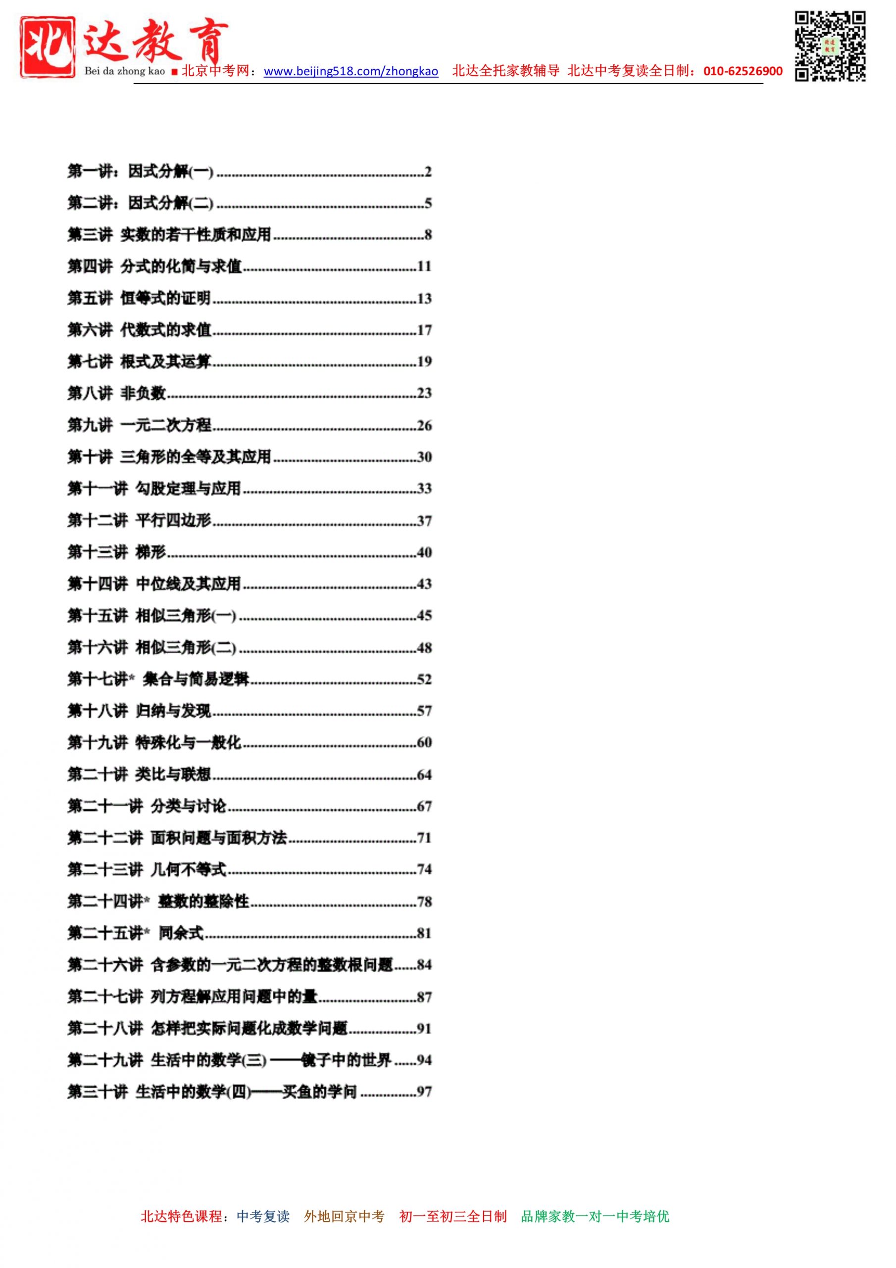 初中数学竞赛专题培训30讲及试题解析合集!北京admw360教研组整理分享相关信息,供大家参考。