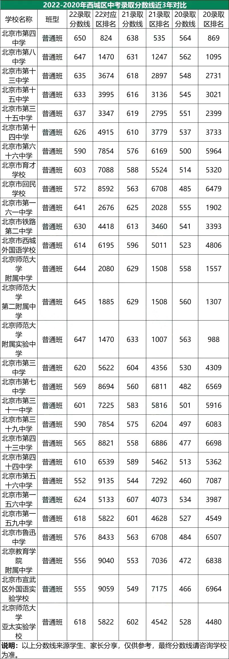 近三年西城区中考录取分数线&区排名数据变化大吗?看完了以上的分享,大家对西城各校近三年的录取情况也有了详细的对比,像北京四中这类比较热门的学校,录取分数线也从20年的564分涨到了今年的650分,今年中考分数虽然普遍偏高,但对比前两年来说,这个数据也是值得大家参考的。