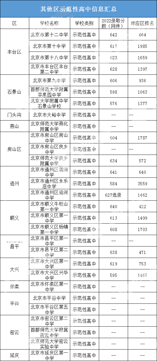 2022年其他区示范高中有哪些?考多少分能上? 北京admw360教研组整理分享相关信息,供大家参考。