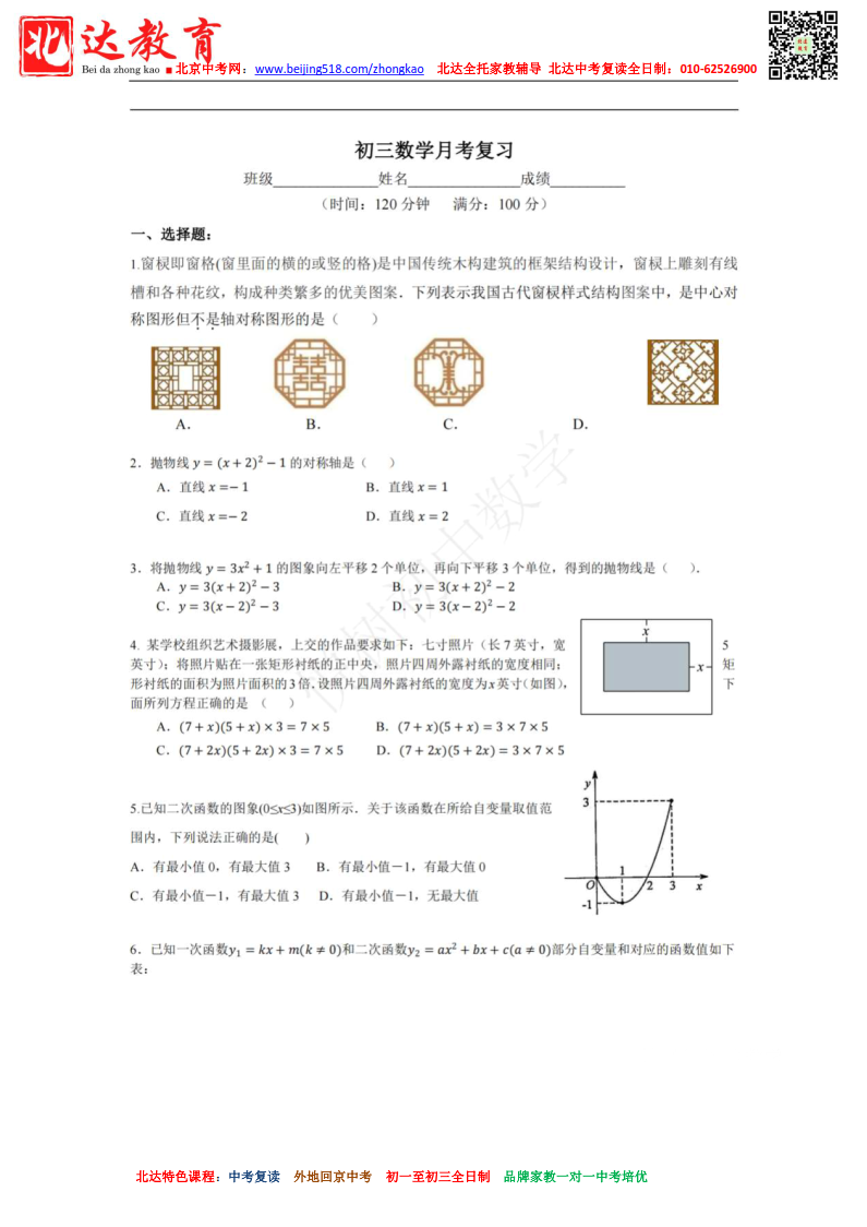 下载链接:北京市2022年-2023年13中分校初三(上)月考数学试卷