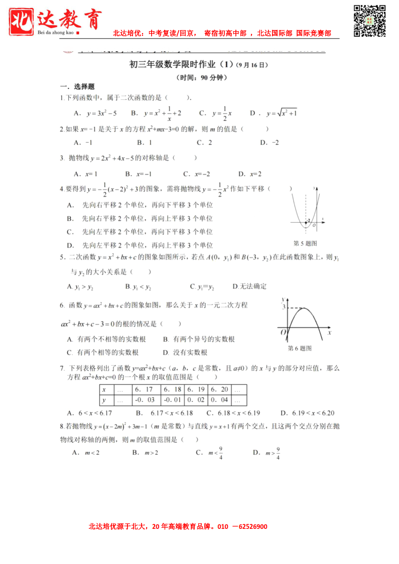 下载链接:北京市2022年-2023年人大附中朝阳学校初三(上)数学限时作业(无答案)