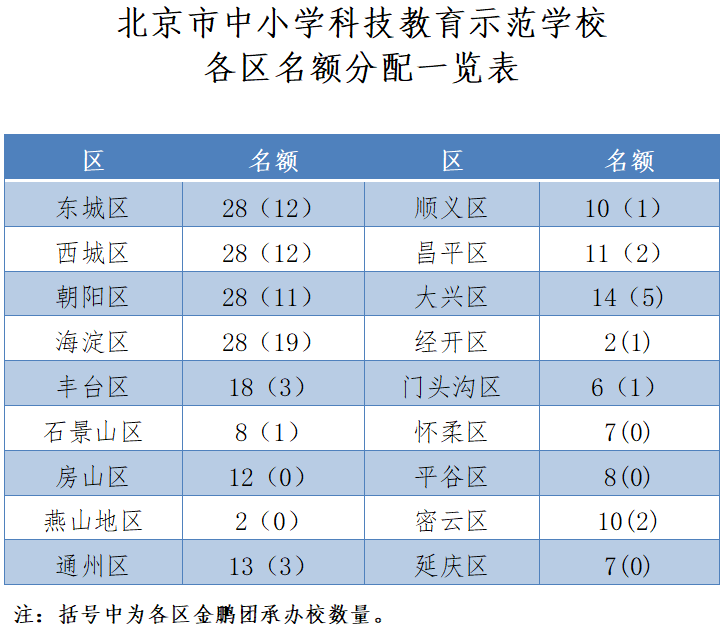 各区名额分配来了!北京将添一批市级中小学科技示范校 ! 北京admw360教研组整理分享相关信息,供大家参考。