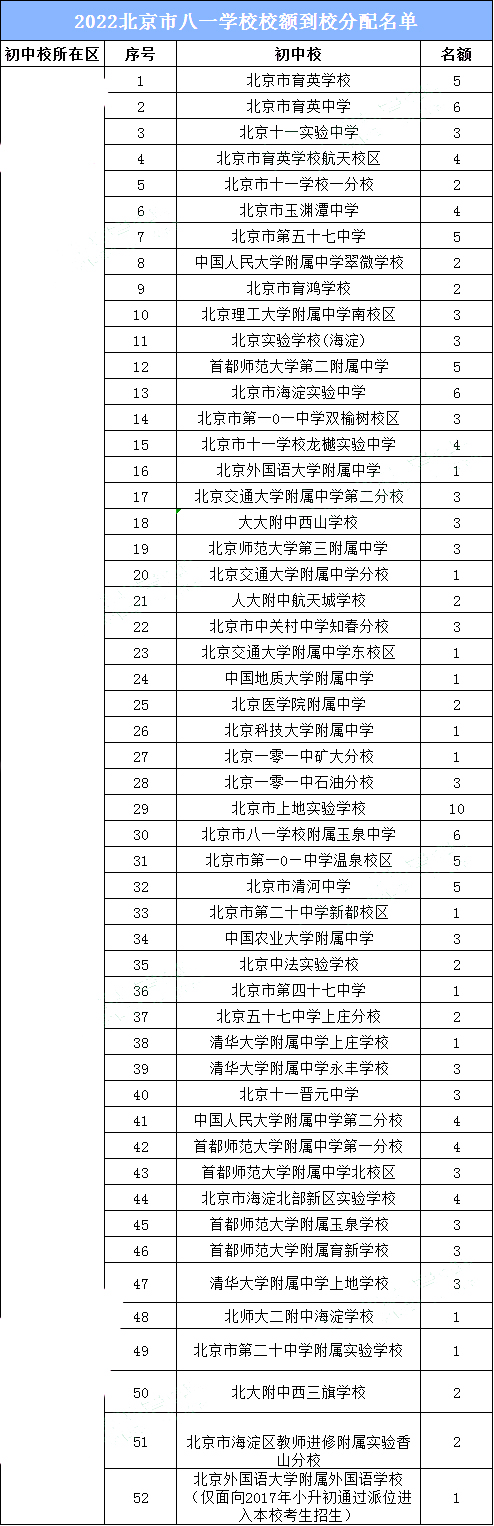 3、2022年八一学校校额到校较2021年名额减少了6人,下面会为大家详细列举近3年八一学校 校额到校名额分配详情↓↓