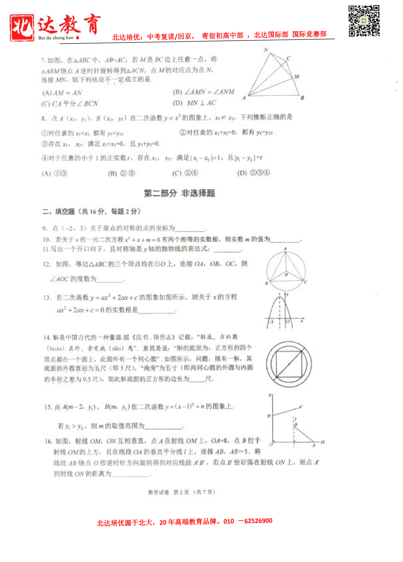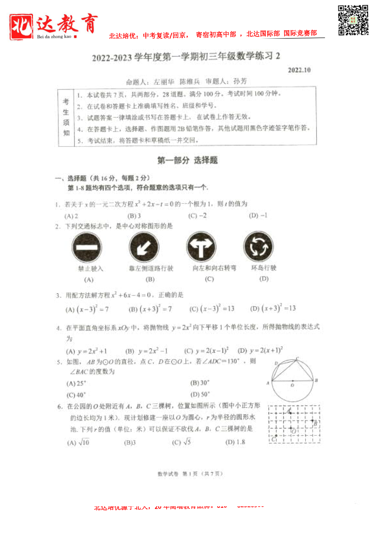 相关阅读:2022-2023学年北京各校初三(上)月考试题及答案汇总