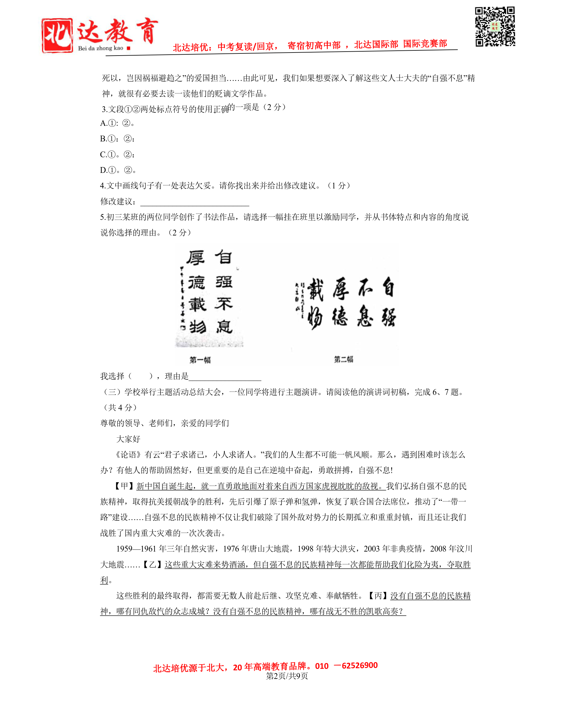 admw360教研组为大家整理了2022北京一零一中初三9月月考语文试卷,享给大家。赶紧下载练起来吧。 admw360中考复读,回京,初一至初三应届全日制选拔通知 ★京籍中复生,应届回京生,京籍初一至…