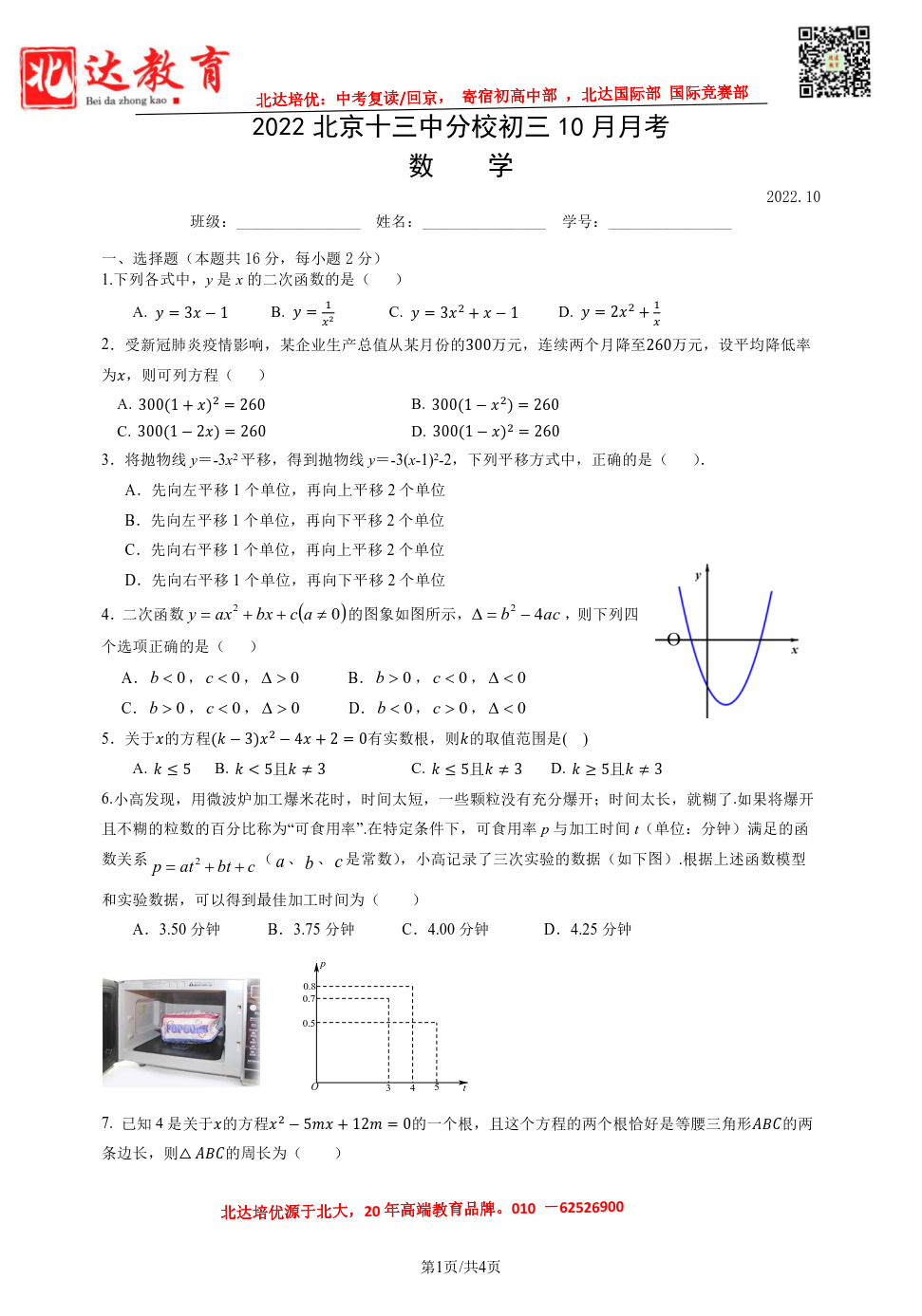 admw360教研组为大家整理了2022北京十三中分校初三数学10月月考试题,享给大家。赶紧下载练起来吧。