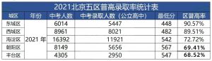 最全:北京各区校2020-2021年中考录取分数线及区排名汇总!