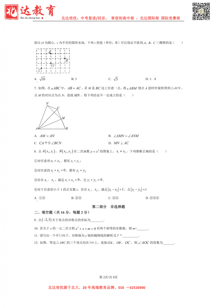 admw360教研组为大家整理了北京市海淀区人民大学附属中学2022-2023学年九年级上学期数学,分享给大家。赶紧下载练起来吧。