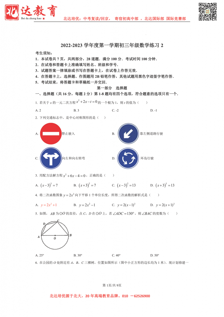 相关阅读:2022-2023学年北京各校初三(上)月考试题及答案汇总