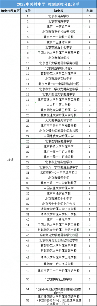 2、2022年中关村中学校额到校较2021年名额减少了9人,下面会为大家详细列举2022年中关村中学 校额到校名额分配详情↓↓
