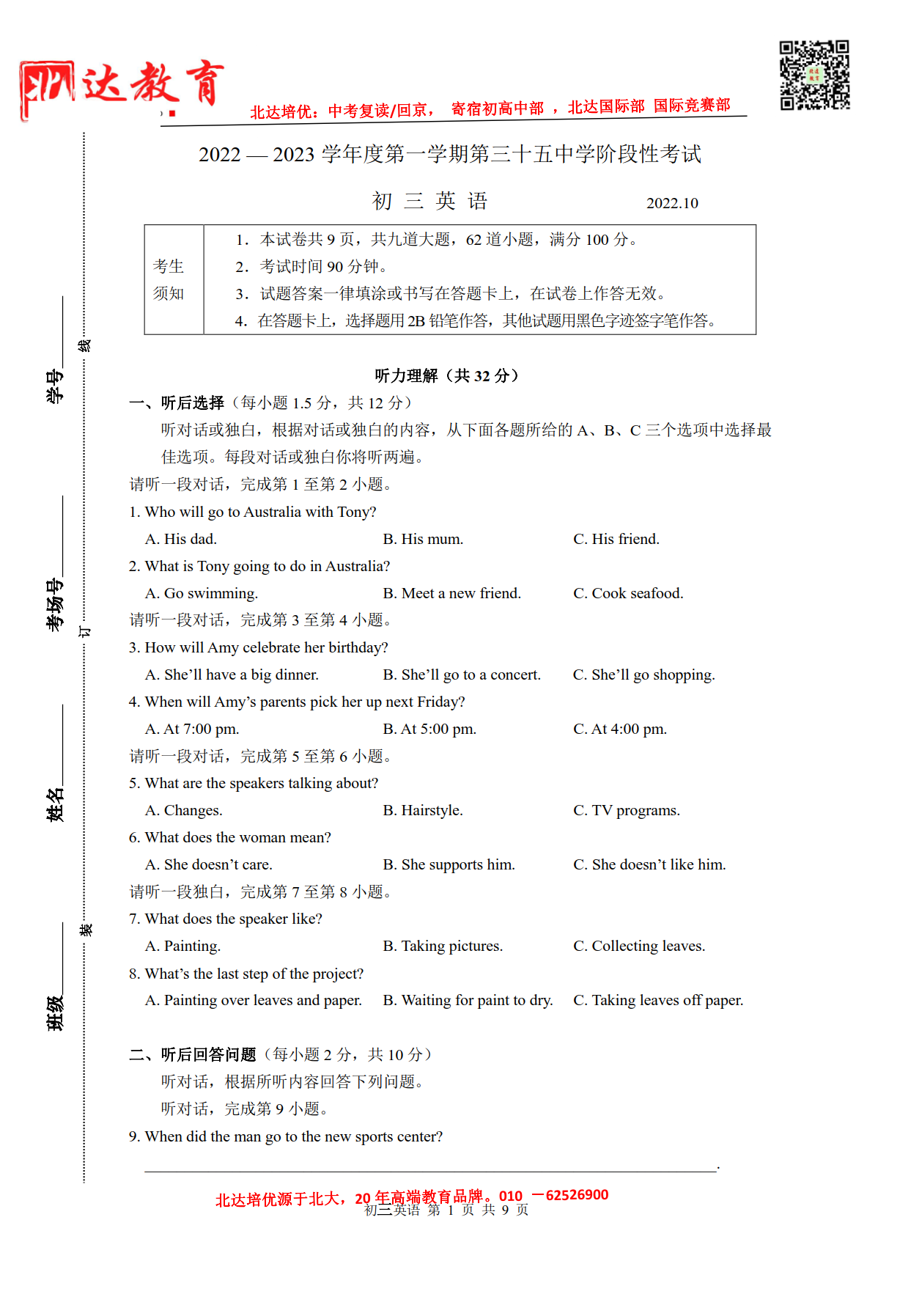 admw360教研组为大家整理了2022北京三十五中初三英语10月月考试题,分享给大家。赶紧下载练起来吧。