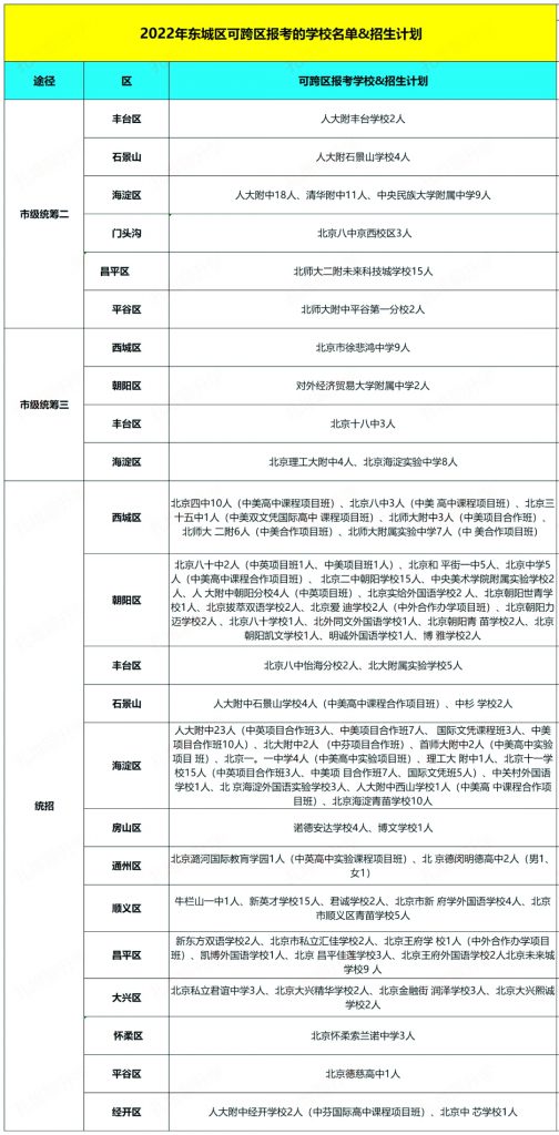 2022东城区可跨区报考升学途径