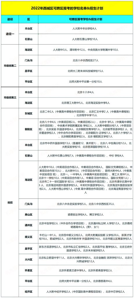 2022西城区可跨区报考升学途径
