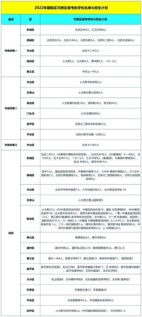 2022朝阳区可跨区报考升学途径