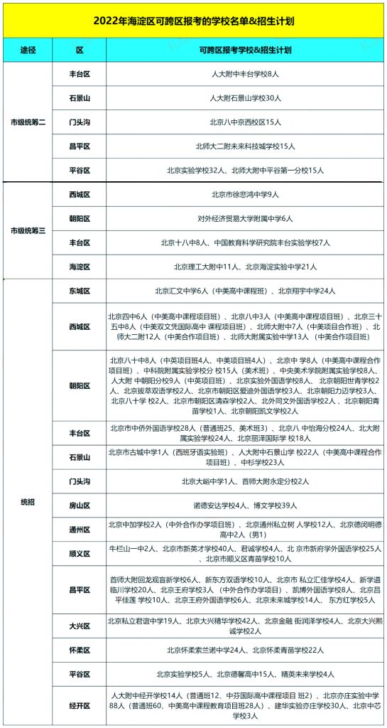 2022海淀区可跨区报考升学途径