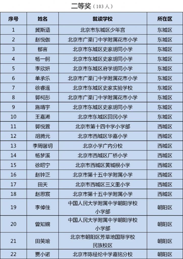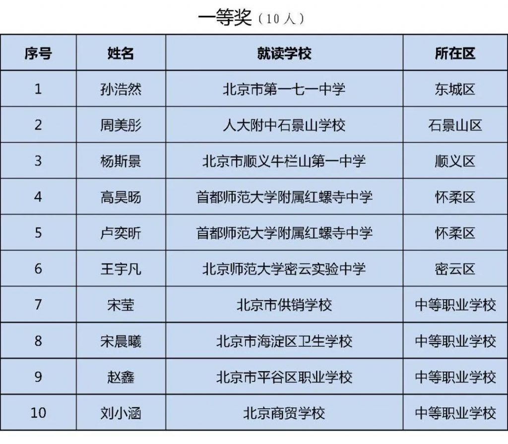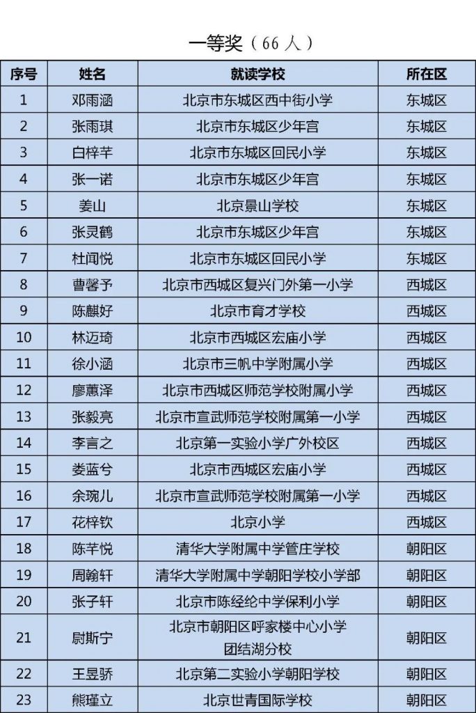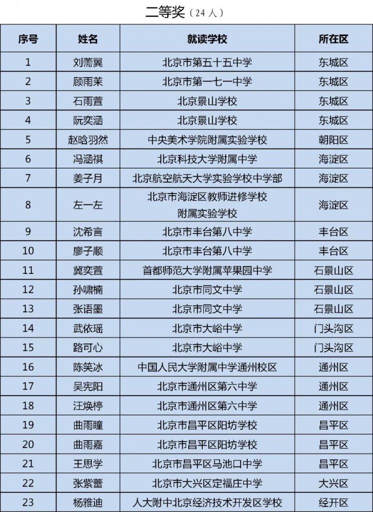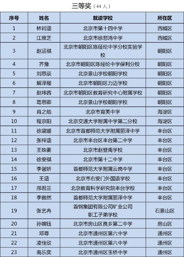 初中组获奖名单