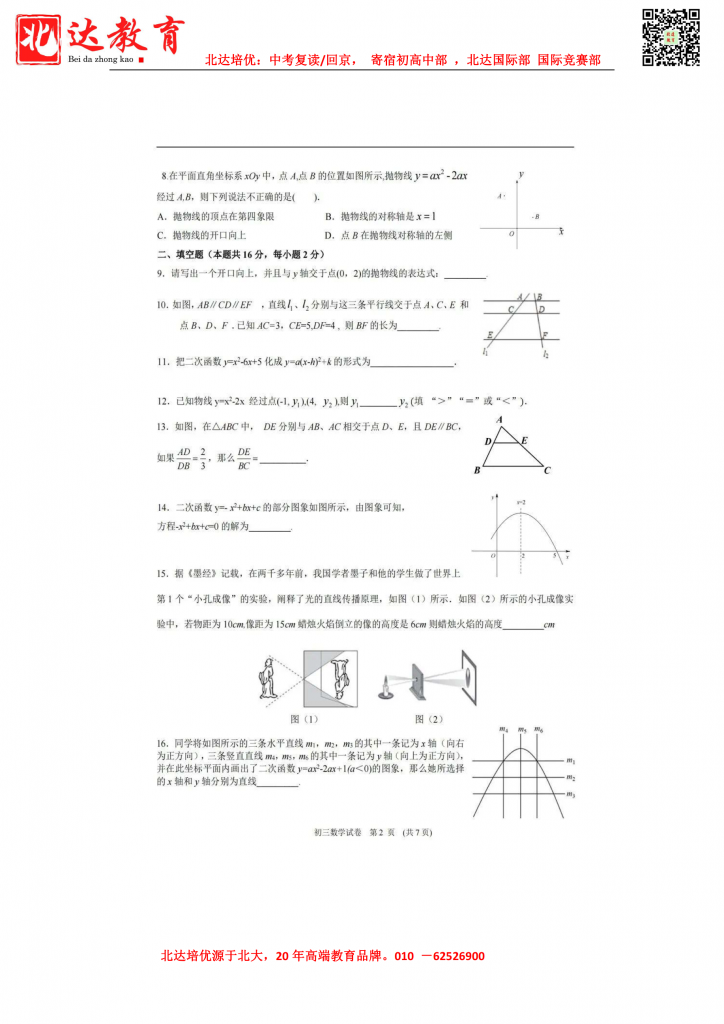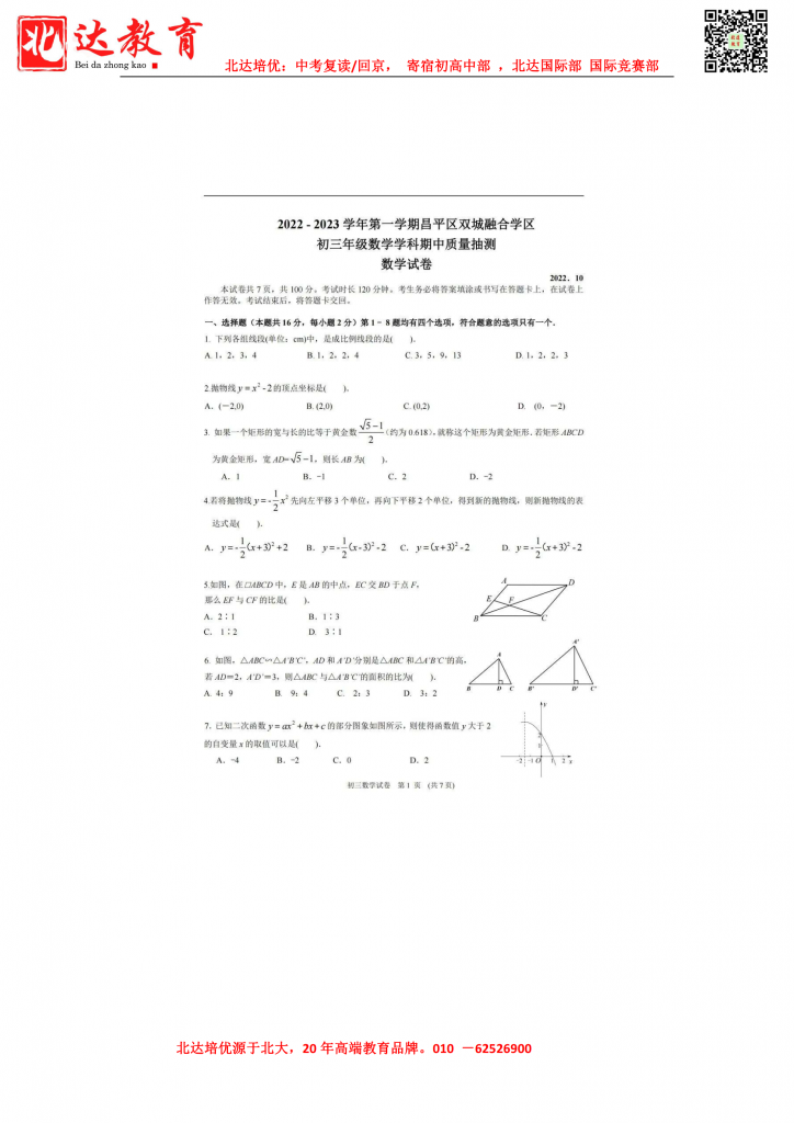 2022昌平区双城融合学区初三(上)期中数学科目已结束,admw360中考网第一时间为大家整理了试卷,分享给各位小伙伴。