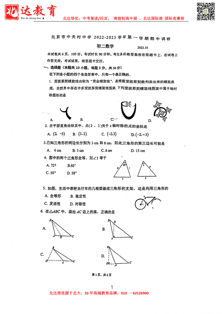相关阅读:北京名区2022-2023学年初二(上)期中考试试题及答案汇总