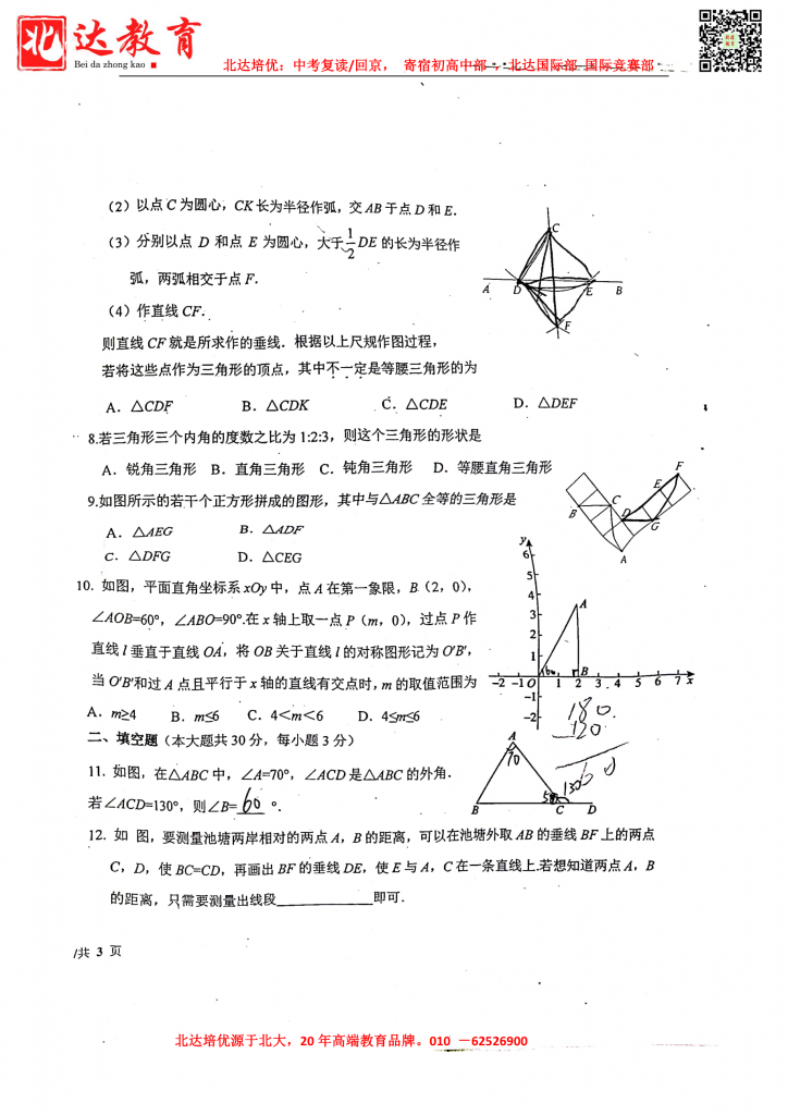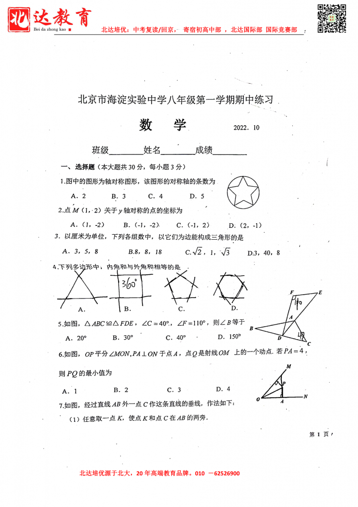 北京市海淀实验中学八年级第一学期期中练习数学科目已结束,admw360中考网第一时间为大家整理了试卷,分享给各位小伙伴。