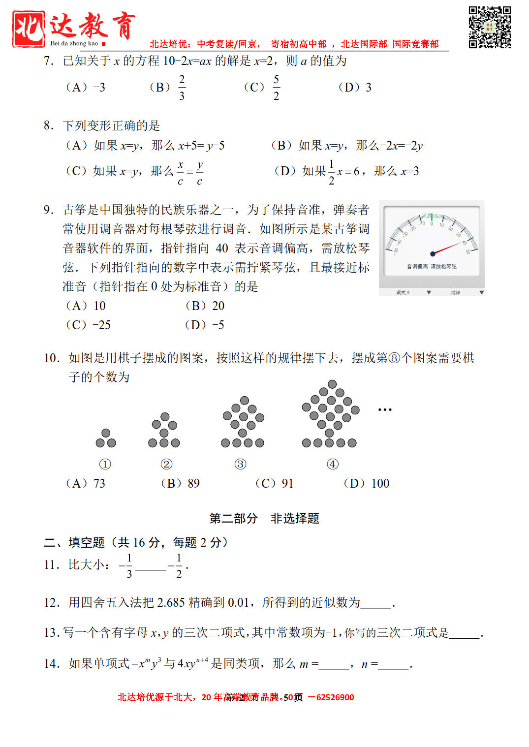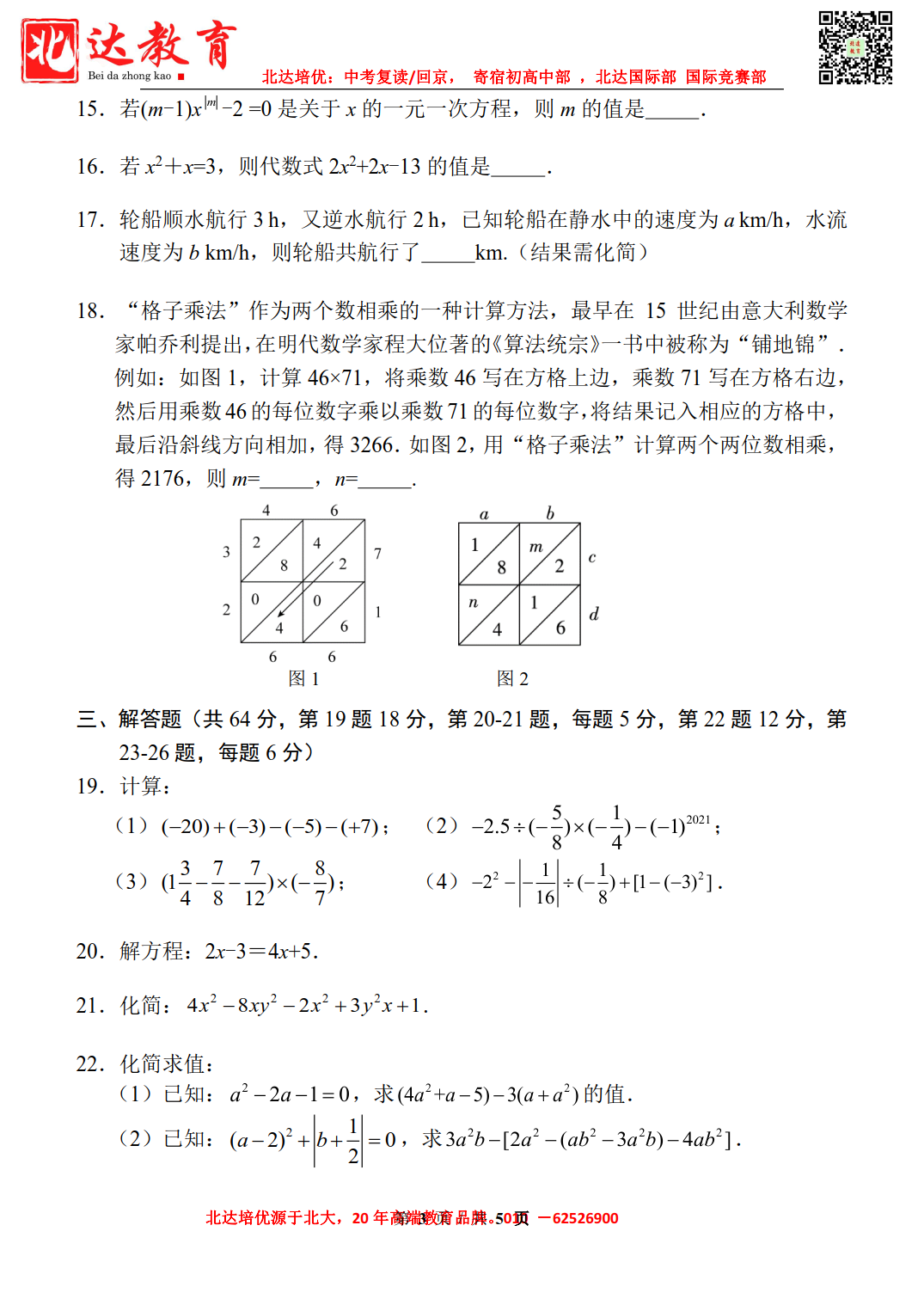 2022-2023学年西城外国语学校初一(上)数学期中考试已结束,admw360中考网第一时间为大家整理了试卷,分享给各位小伙伴。