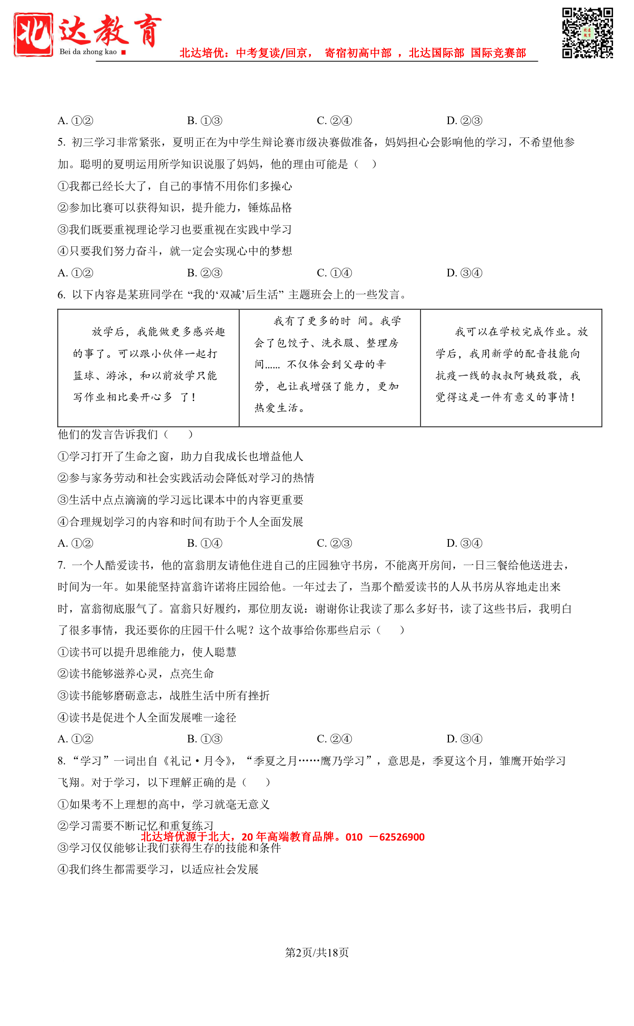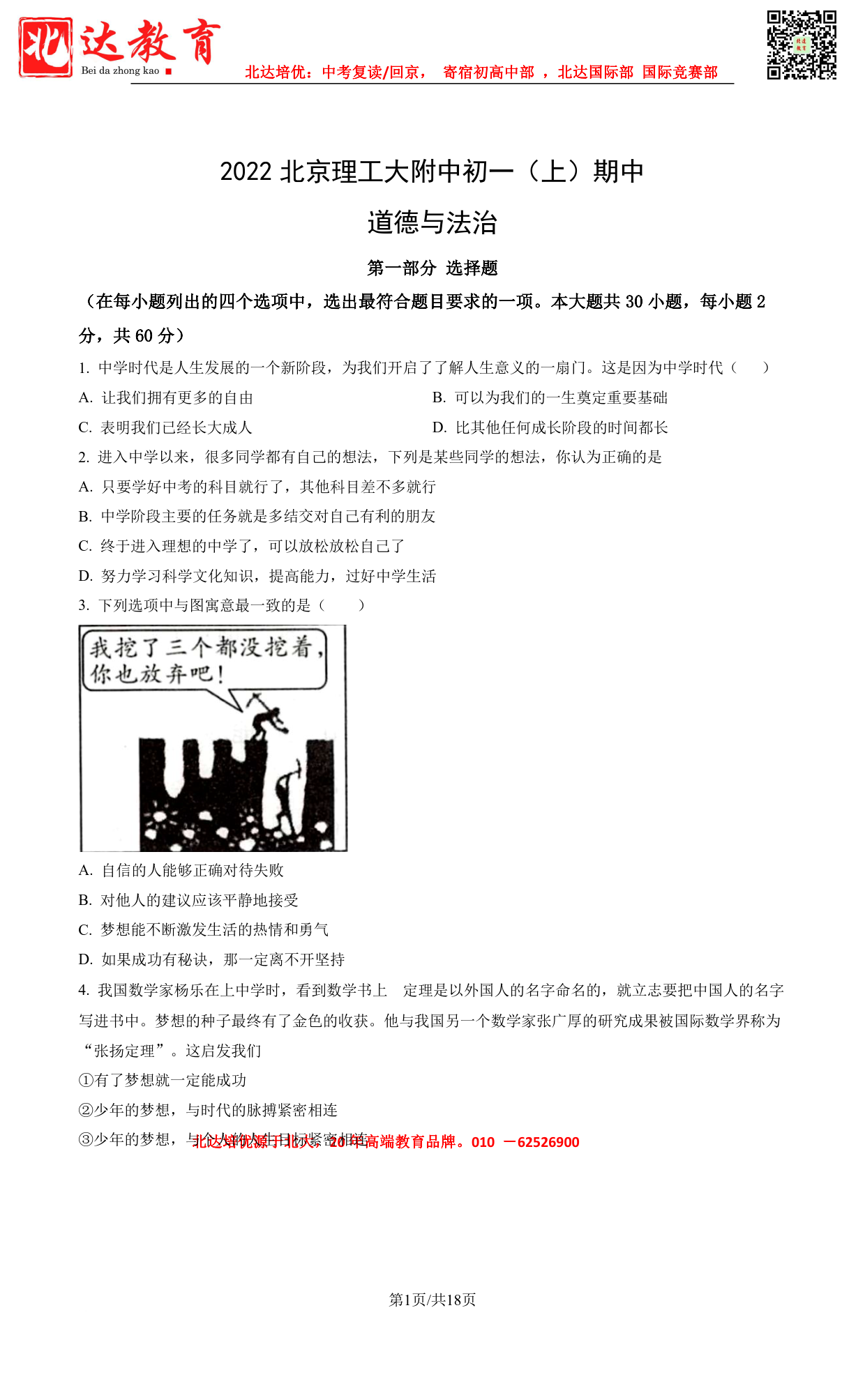 admw360中考网为大家整理了2022-2023学年北京理工大附中初一上期中道德与法治试题(含答案)!分享给大家,赶紧下载练习起来吧。