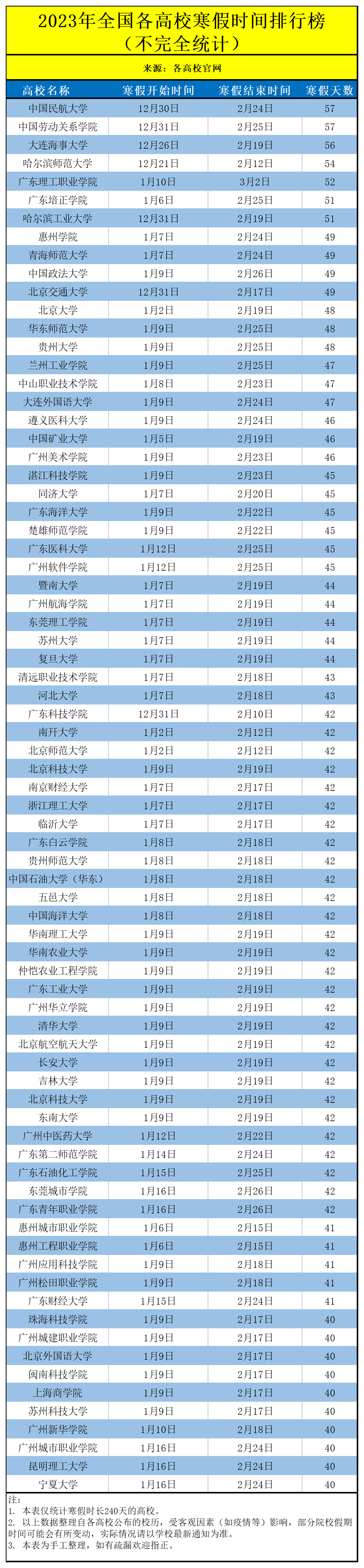 统计发现,有多所高校如哈尔滨师范大学、北方工业大学、大连海事大学、中国民航大学、广东科技学院等高校12月下旬就开始放寒假。
