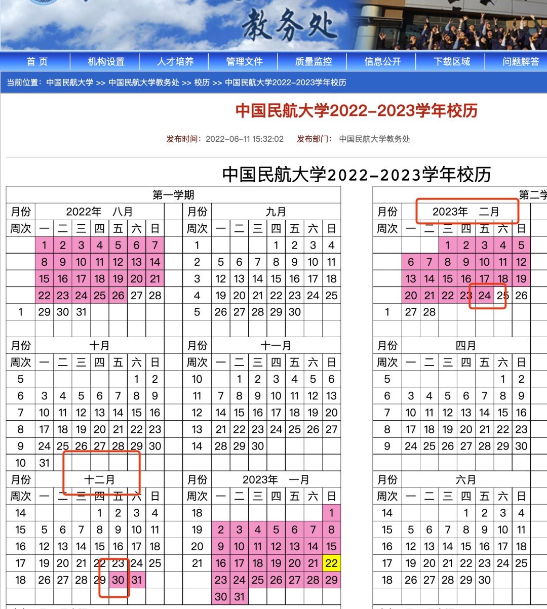 根据中国民航大学校历显示,寒假开始时间为12月30日,结束时间为2023年2月24日,寒假时间长达57天。