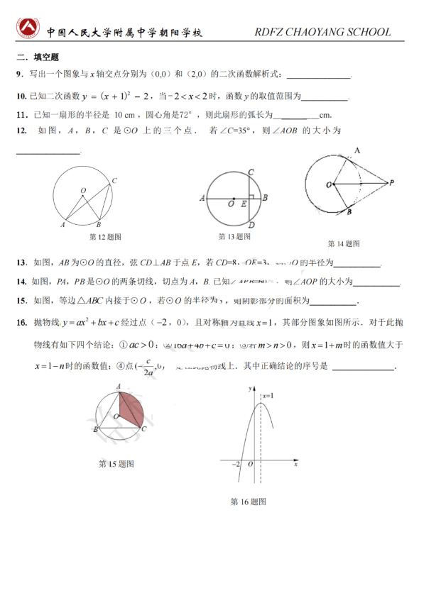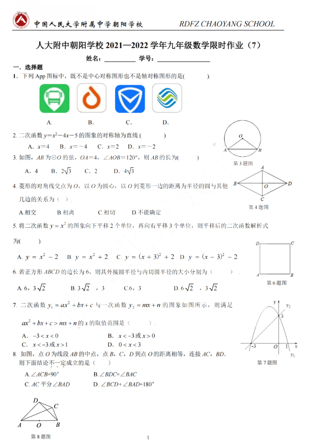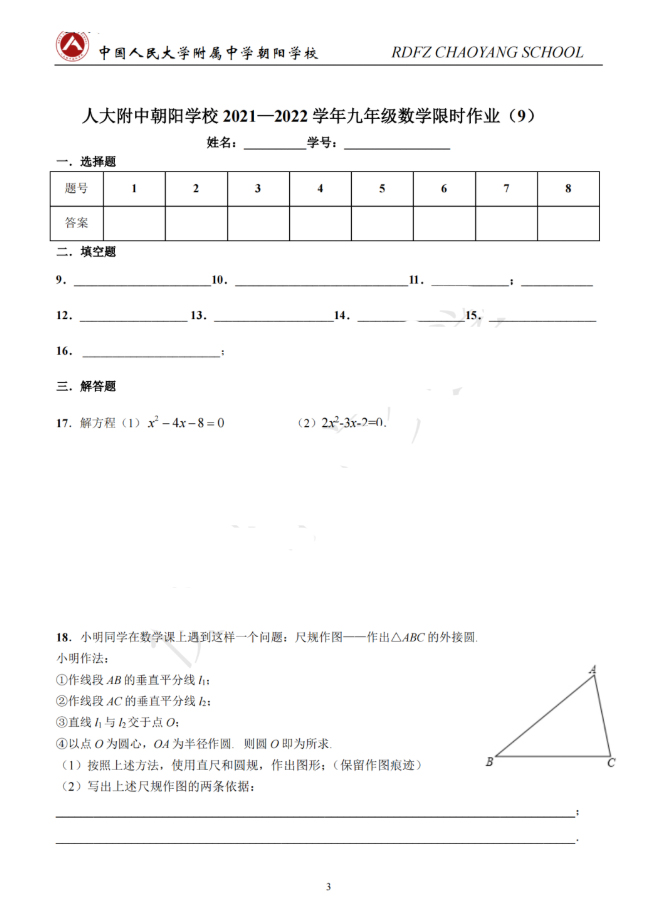 今天admw360中考网为大家整理的是北京市人大附中朝阳学校初三九年级(上册)数学限时作业,一起下载练习起来吧。