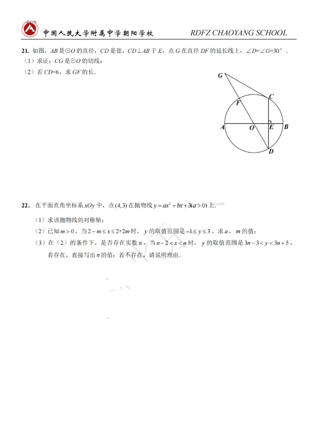 2022北京名校初三下试题及答案汇总