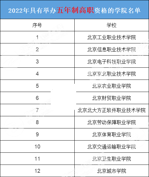 2022年北京具有招生资格的五年制高职资格的学院名单已公布