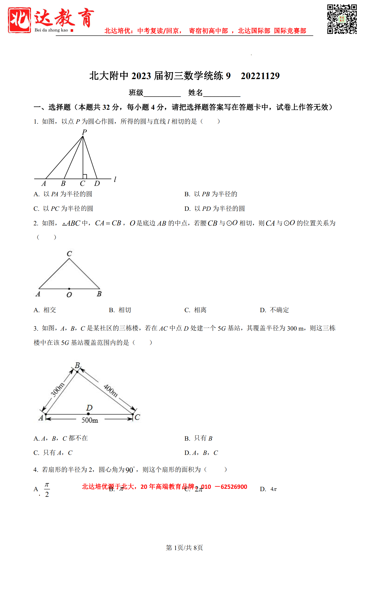 admw360中考网为大家整理了2022-2023学年北大附中九年级上11月月考数学试卷及解析,需要的同学赶紧下载练习起来吧。