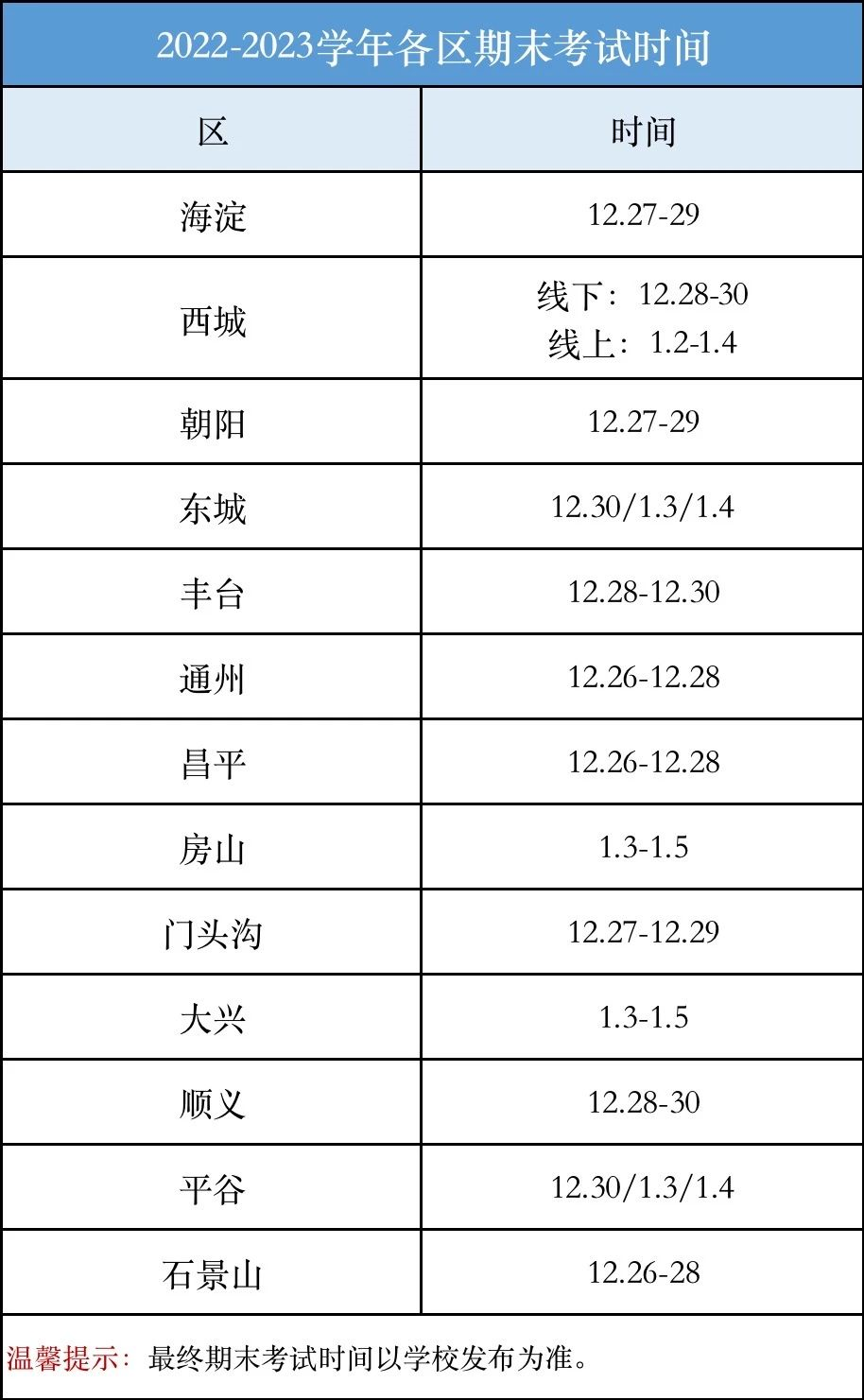 2023北京13区初中期末考试时间出炉!已有5区发布期末考安排!以下是admw360中考网为大家整理的内容详情,一起来看。