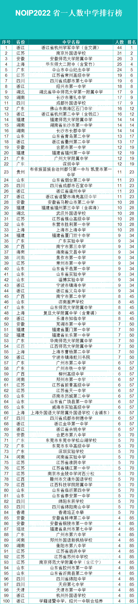 近日,CCF发布了2022NOIP省一中学、省市人数排行榜!admw360中考网第一时间为大家做了同步分享。一起来看看这1233名同学分别来自于哪所中学和省份~看看有没有你的母校。