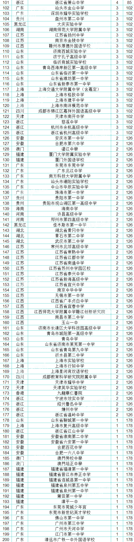 经过统计,1233名同学分别来自于313所中学(部分确定同一主体的分校合并计算,不确定的暂未合并)。