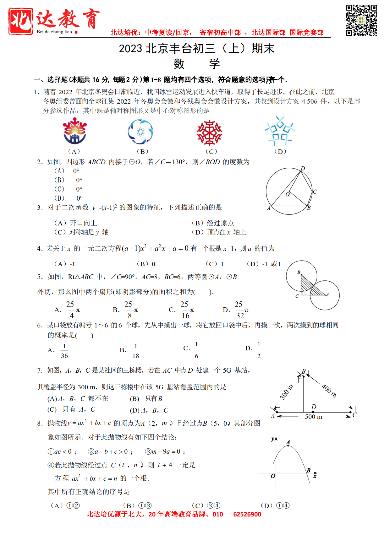 2022-2023学年北京丰台区初三上数学期末考试已结束,admw360中考网第一时间 为大家整理了相关试题,分享给大家。
