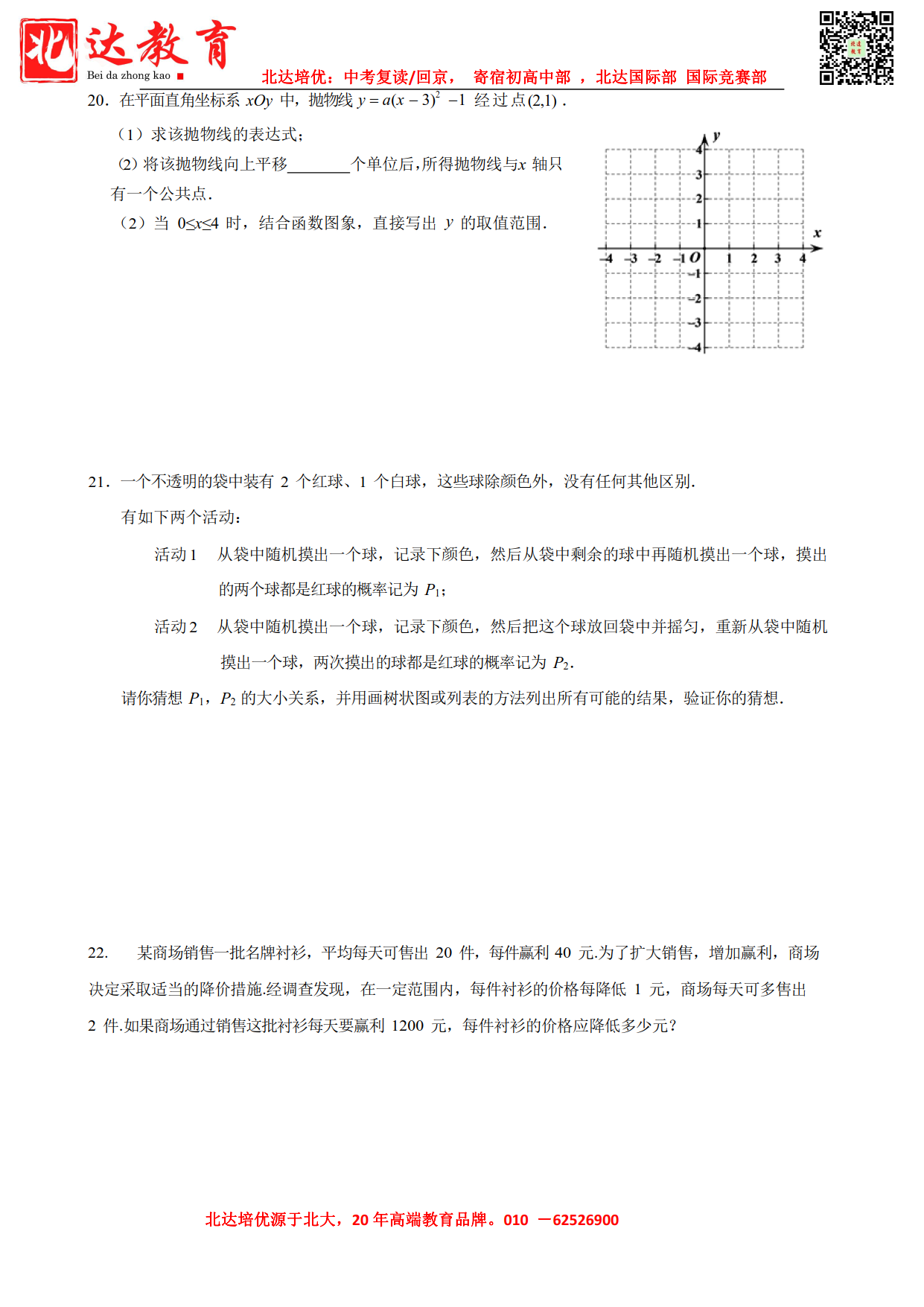 2021年北京各区初三一模试卷及答案汇总