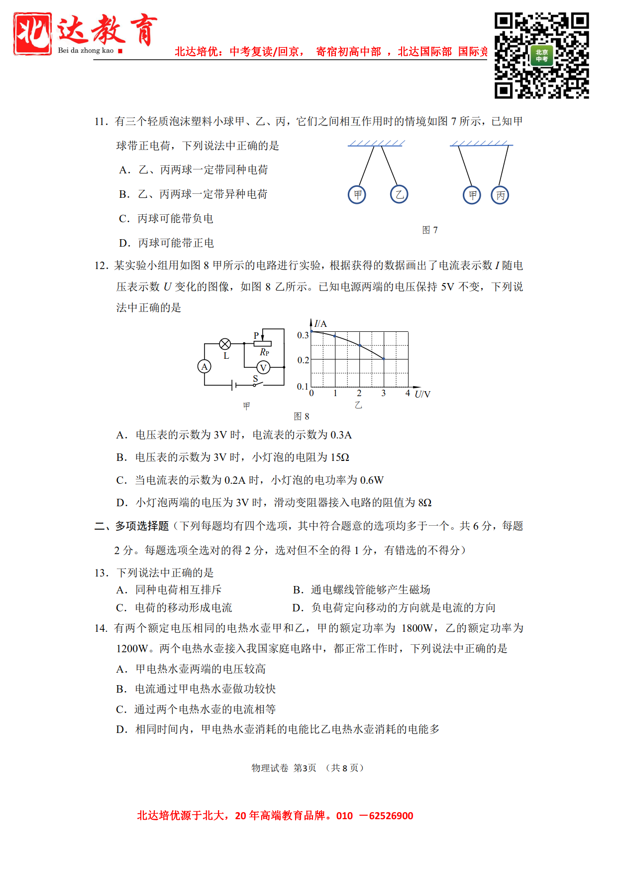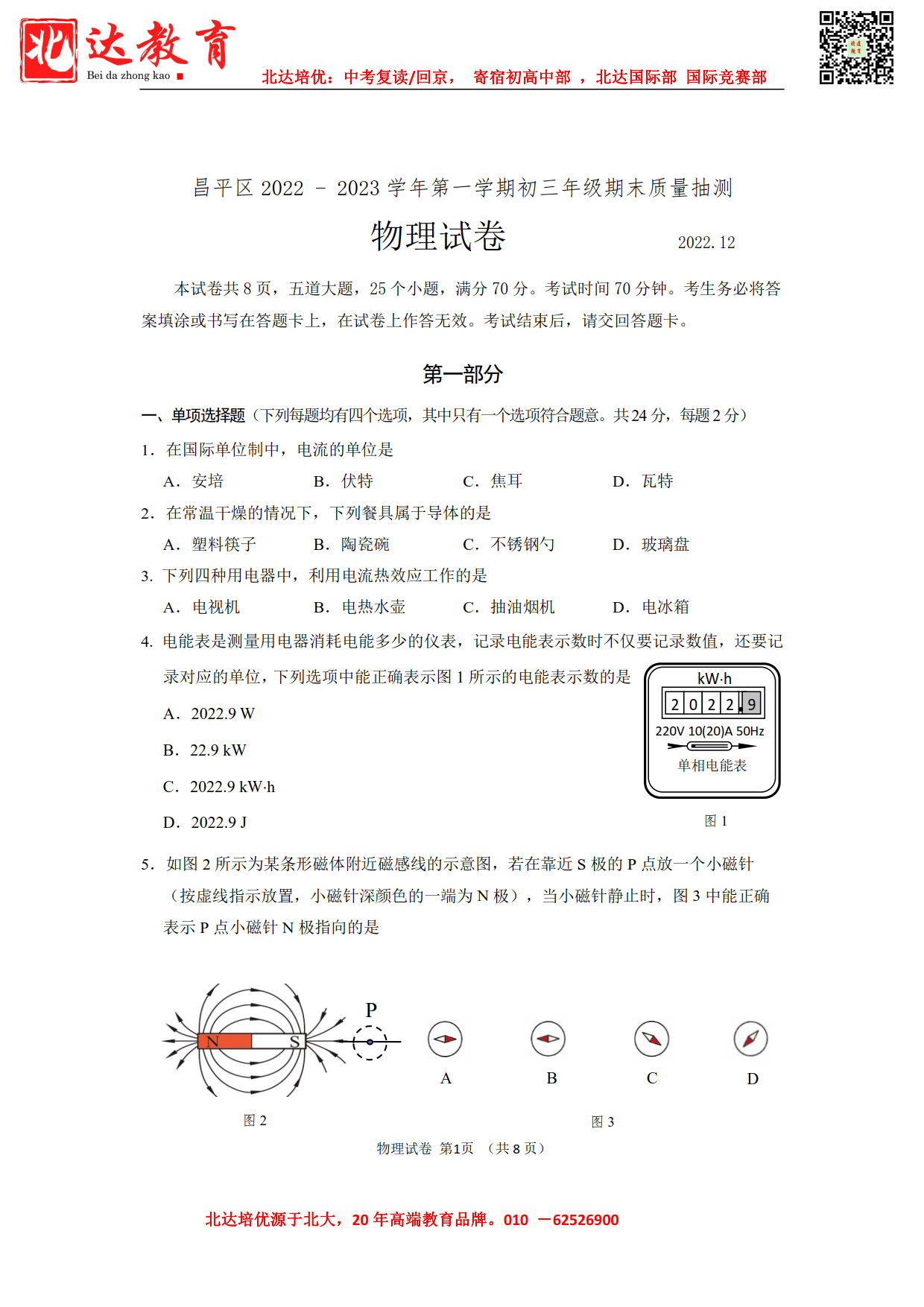 2022-2023学年北京昌平区初三上物理期末考试已结束,admw360中考网第一时间 为大家整理了相关试题,分享给大家。