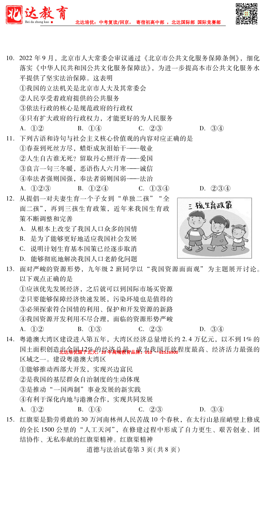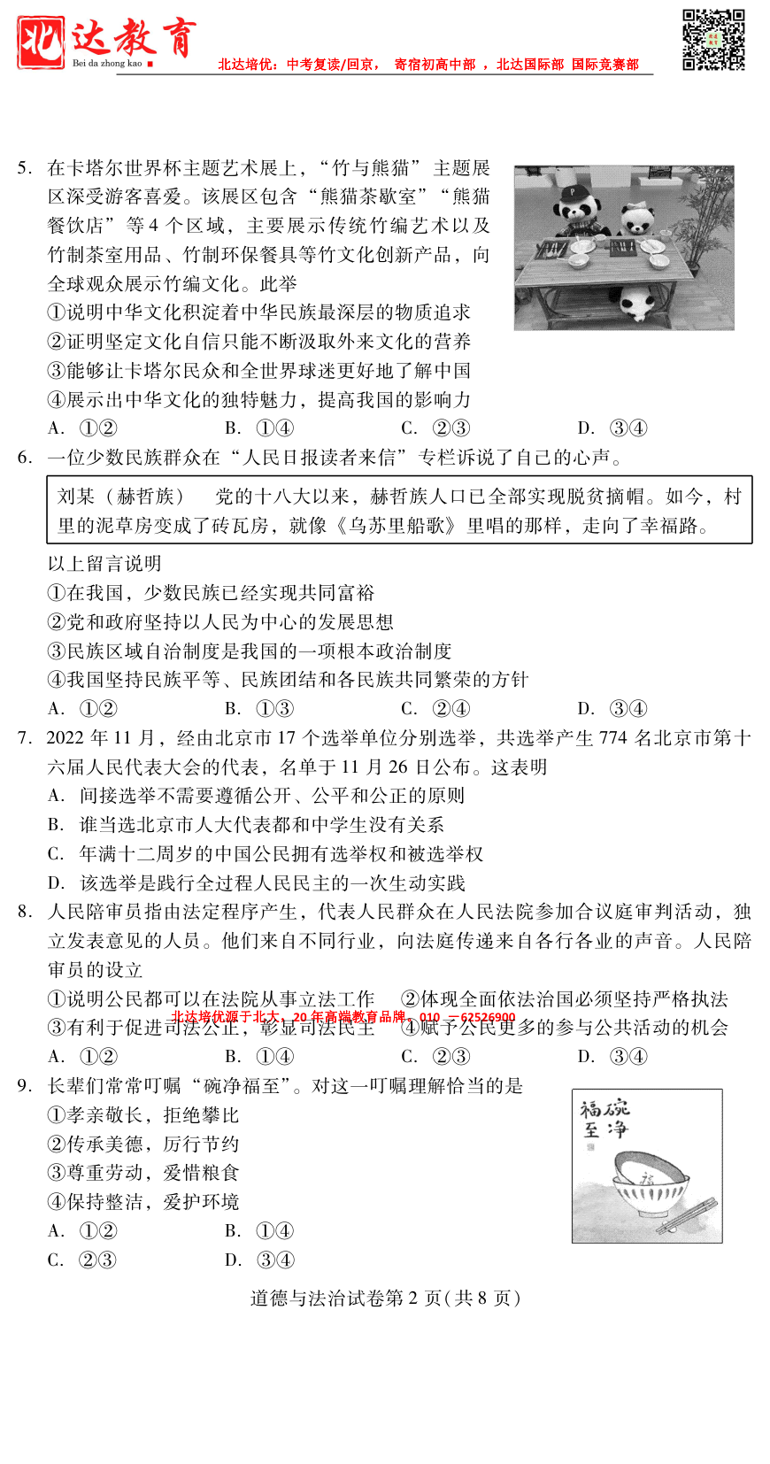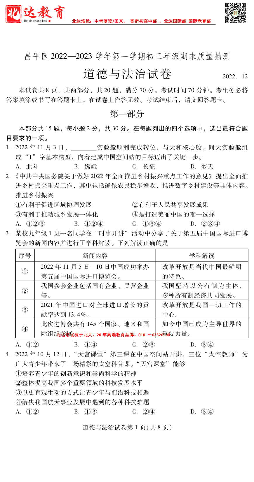 2022-2023学年北京昌平区初三上道德与法治期末考试已结束,admw360中考网第一时间 为大家整理了相关试题,分享给大家。