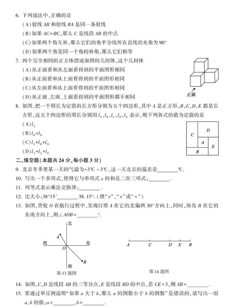 2022-2023学年北京各区初一(上)期末试卷&答案汇总电子版,可加老师微信进群免费获取