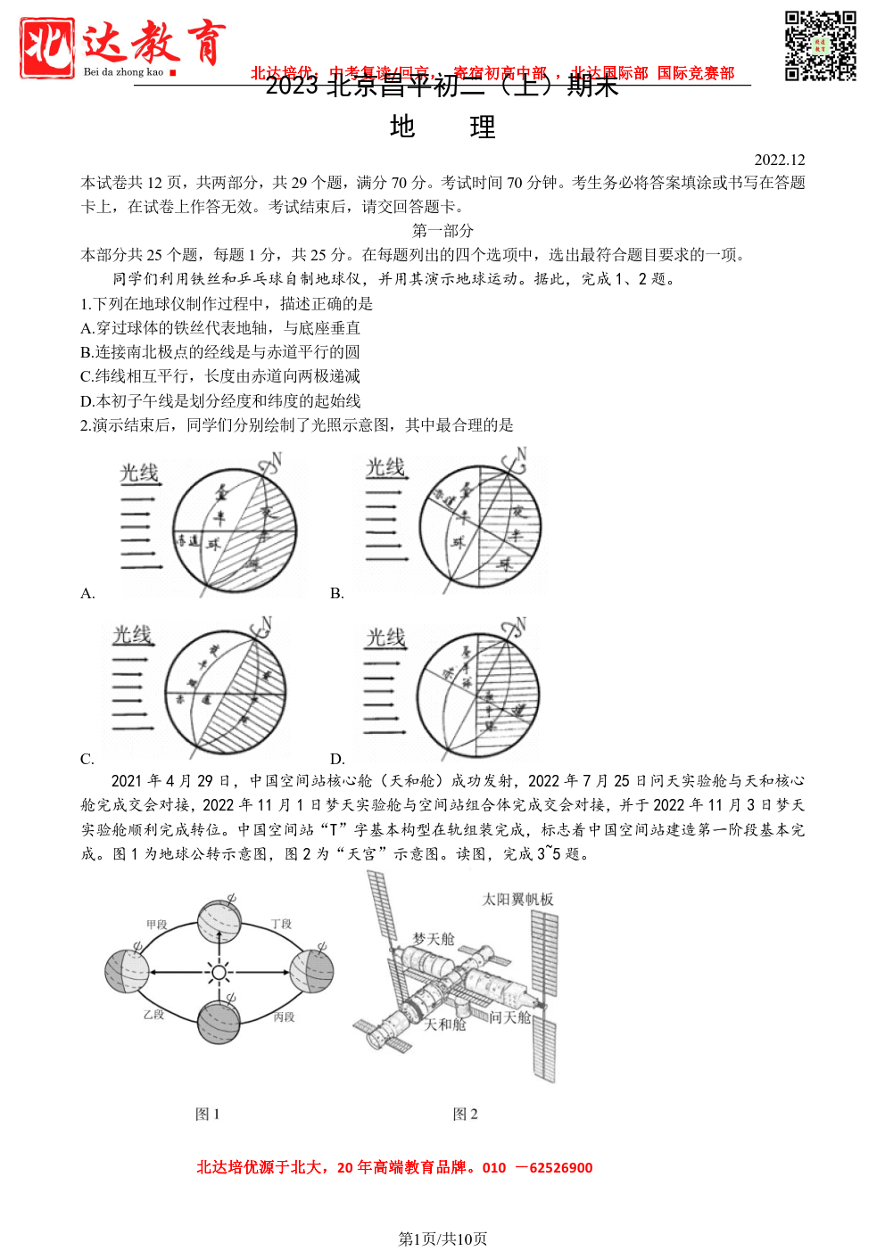 2022-2023学年北京昌平区初二上期末地理考试已结束,admw360中考网第一时间 为大家整理了相关试题,分享给大家。
