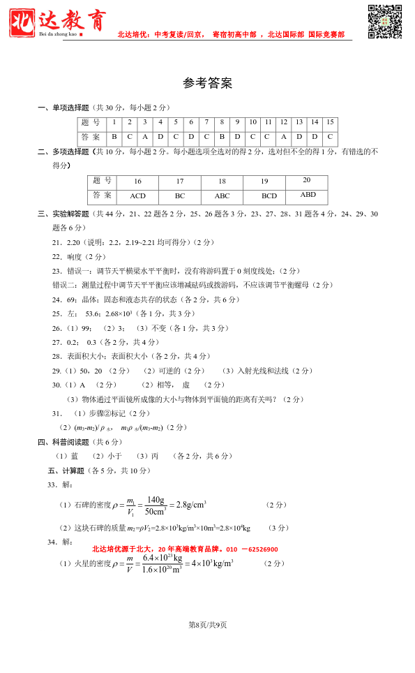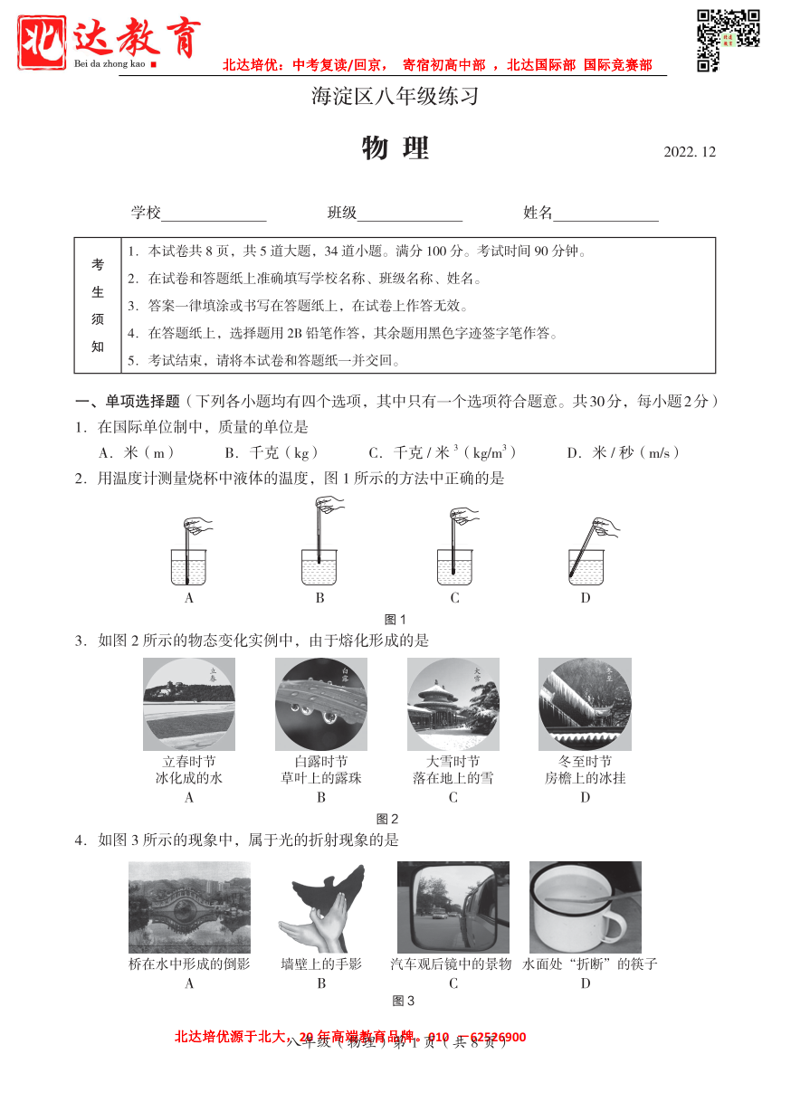 2022-2023学年北京海淀区初二上期末物理考试已结束,admw360中考网第一时间 为大家整理了相关试题及答案,分享给大家。
